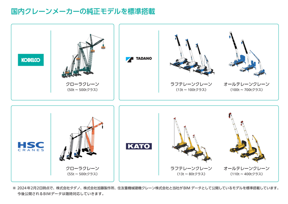 K-D2 PLANNERには国内主要メーカーのクレーンデータが豊富に搭載されている点も大きな利点だ。「自分たちでカタログを探す必要がなく、性能や作業範囲、荷重条件まで詳細に検証できるのは非常に助かります」と山口氏はいう。これにより、設計部や現場担当者との調整がスピーディーに進み、工期短縮やコスト削減に直結している。そして、山口氏は「誰でも直感的に操作できるのがK-D2 PLANNERの良さです。モデルができていれば、クレーン検討をしたことのない社員でもクレーンの位置や体勢がわかり、簡単に検討を始めることができます」と使用感を語る。